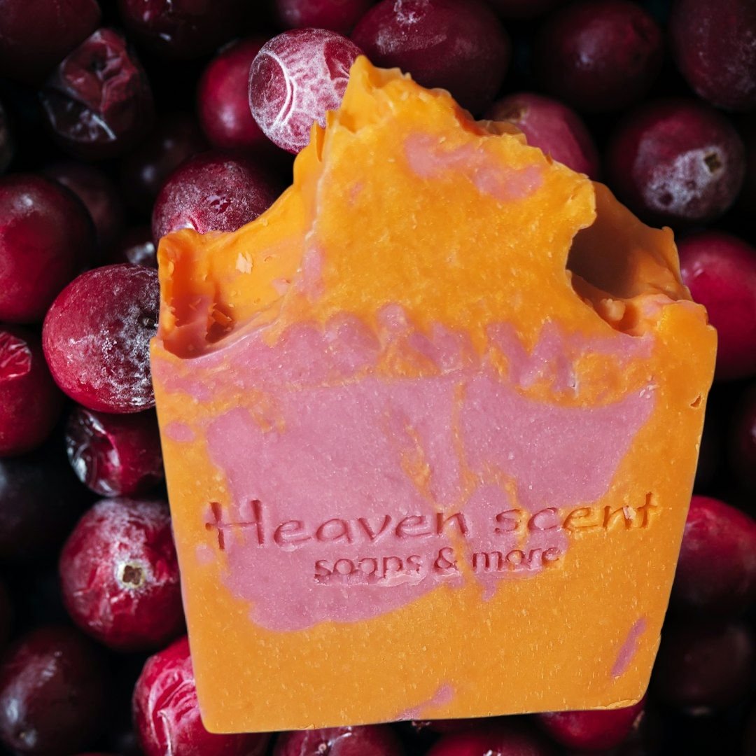 This beautiful bar of soap has scents of sweet orange, zesty lemon, balanced with tangy cranberry and a touch of vanilla musk.